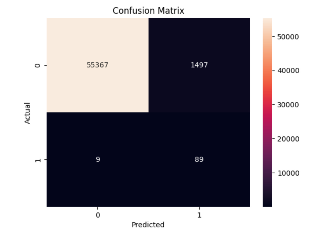 True Positives (TP): 89 → Actual frauds correctly detected.