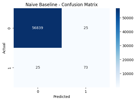 Why This Happens: The naive model is severely biased toward the majority class. With 99.83% of transactions being legitimate, the model learns that predicting "legitimate" is usually correct. It doesn't adequately learn the patterns that distinguish fraud.